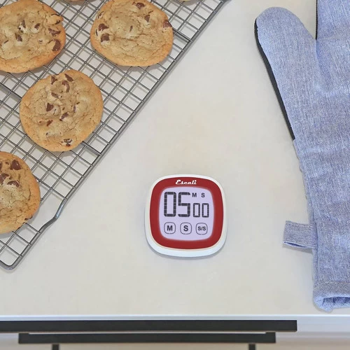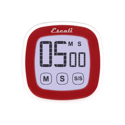 The red Escali Touch Screen Digital Timer helps you multitask in the kitchen and features a large back-light display that is easy to read under any lighting condition. Count up or down, and recall previous timer settings for repetitive tasks. The timer’s controls are built into the back-light display and make it easy to wipe clean. The large back-light display is easy to read under any lighting condition and turns off automatically after 30 seconds of inactivity to save battery. Use the magnetic back to hang the display on a nearby refrigerator, or place it on a countertop using the built-in kickstand.