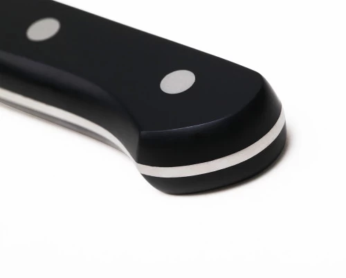 The embodies control, quality, and long-lasting dependability. Featuring a German-steel blade of X50CrMoV15 steel, each blade offers excellent edge retention and stain-resistance. The modified bolster is angled to encourage a proper pinch grip on the knife, giving the user mastery over their blade. Designed with an angle bolster for ease of sharpening, the whole blade can be used from tip to heel. An ergonomic, triple-riveted ABS handle encases each knife’s full tang, giving the Fusion Classic substantial strength and heft. The ABS handle is dishwasher safe, but hand-washing is recommended.