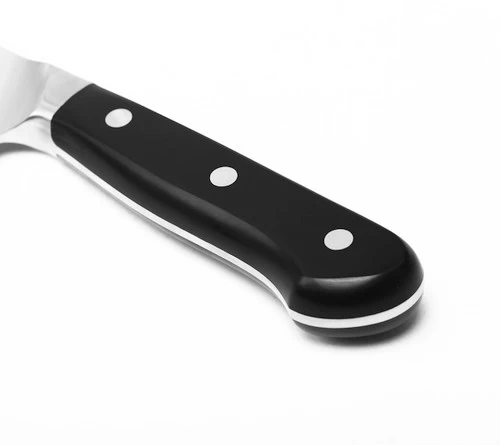 The Fusion Classic line embodies control, quality, and long-lasting dependability. Featuring a German-steel blade of X50CrMoV15 steel, each blade offers excellent edge retention and stain-resistance. The modified bolster is angled to encourage a proper pinch grip on the knife, giving the user mastery over their blade. Designed with an angle bolster for ease of sharpening, the whole blade can be used from tip to heel. An ergonomic, triple-riveted ABS handle encases each knife’s full tang, giving the Fusion Classic substantial strength and heft. The ABS handle is dishwasher safe, but hand-washing is recommended.