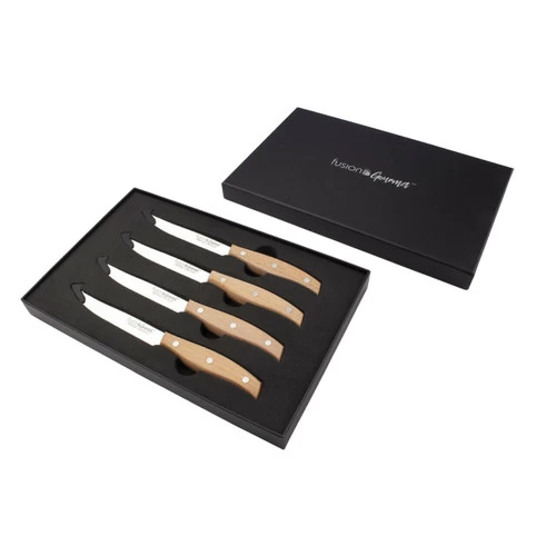 The Fusion Gourmet 4pc Steak Knife Set (6820-13) is precision-stamped from a single piece of high-quality, X50CrMoV15 German steel. Lighter than a forged knife, but crafted without sacrificing any blade sharpness or durability, Fusion Gourmet is built for performance at a great value. The straight-edged blade is ideal for steaks as it won’t tear the meat fibres, ensuring your steaks remain as flavourful and juicy as you cooked them. The straight-edged blade is also easy to keep sharp on a honing steel or resharpen when dull. Fusion Gourmet is finished with a unique, contoured handle crafted from beech that is triple-riveted for superior durability. Handwashing recommended.