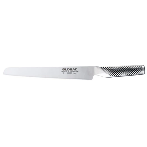 The Global G8 Roast Slicer makes a great carving knife, as it has a long and narrow blade. This carving knife makes excellent work of joints with no bones in. It will allow you to cut thin even slices of meat, so works best with hams, joints of beef, salmon and any de-boned lamb.Â