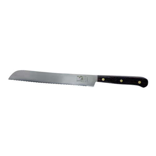Fully serrated blade, rosewood handle. Great for freshly baked breads, sandwiches, and more. The Full Tang Line has ‘full tang’ steel, meaning the tang goes all the way fully through the handle; this line is in between the quality of the forged and the regular lines.