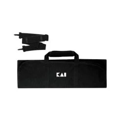 The Kai 8-Slot Knife Roll offers space for up to eight knives in secure elasticized pockets. There’s also a zippered net pocket inside, perfect for non-bladed kitchen tools. The interior of the knife roll has space for business cards, writing tools, or chopsticks. The roll is made of PVC-laminated 600 denier woven polyester with nylon straps. It is fully zippered, has Velcro closures, and offers a padded, reinforced handle when it’s time to travel.