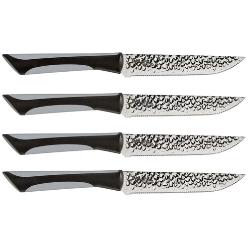 - Set of 4, hand-finished reversed-scallop serrated steak knives