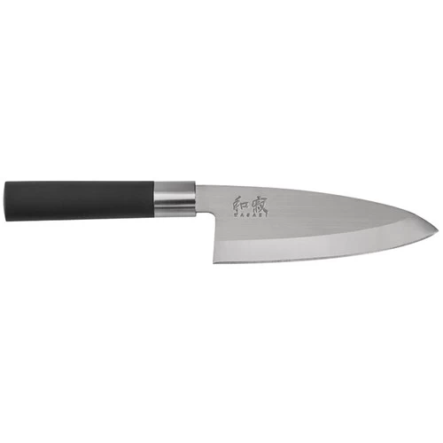 A deba is one of the key traditional Japanese blade styles. In Japan, the deba is a heavier knife and is used primarily for breaking down and filleting fish. Some cooks like it for working on poultry as well. The Kai Wasabi Deba is a medium-sized deba with the traditional single-bevel blade. This gives it an extremely sharp edge that will move through your fish quickly and easily, producing a very clean fillet. The deba is not intended to be used to chop through larger, heavier bones.Â