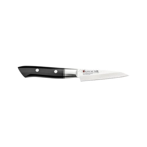 The Kasumi Hammered collection is a modern arrangement of old-fashioned hammer knives with excellent corrosion resistance. This three-layer kitchen knife uses VG-10 stainless steel as the inner core and SUS410 grade stainless steel as its exterior, which provides excellent corrosion resistance. The blade is hardened to HRC 59-60 and has a chrome hammered, polished mirror finish and is sharpened to a precise cutting edge.Â