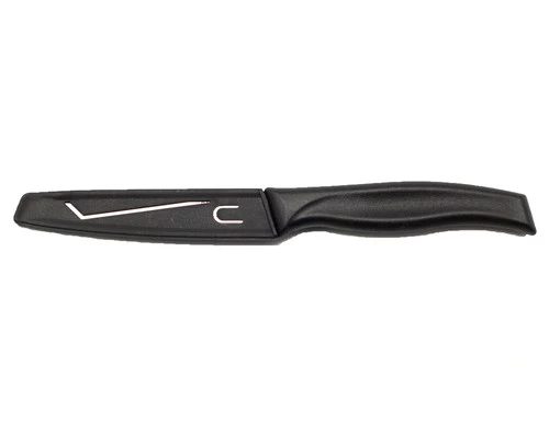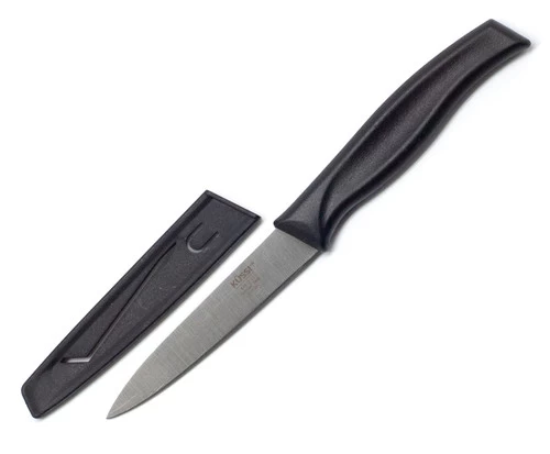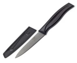 The Kussi 4″ Paring Knife with Sheath is the perfect multi-use knife. Longer than a typical paring knife, the 4″ blade easily manages small to medium-sized prep tasks. The hard sheath lets you store you knife safely in a drawer, where it will protect both the blade and your fingers. Also perfect for picnics, camping, and hiking, the Kussi 4″ Paring transports safely. Dishwasher safe.