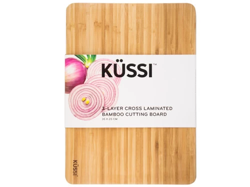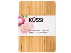 This cutting board is constructed from high quality eco-friendly bamboo using an innovative triple-layered cross-lamination technique for reduced warping, cracking or splitting.