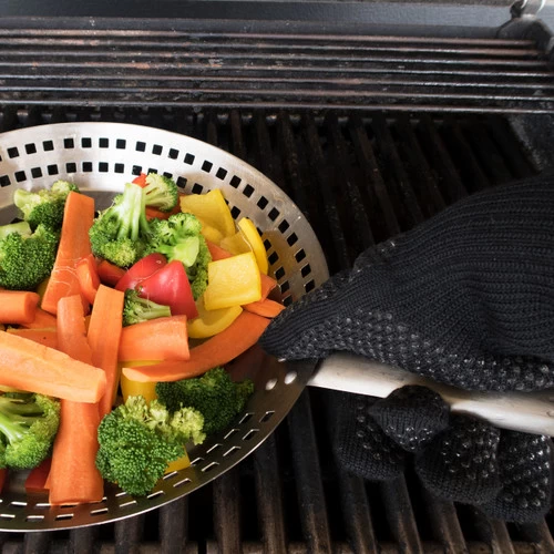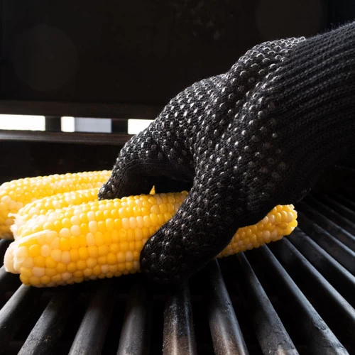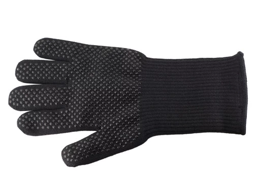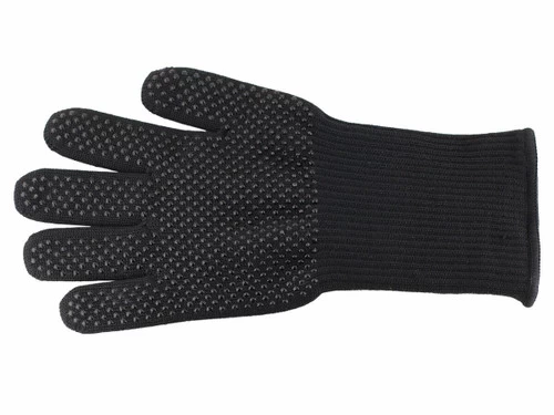 Fire up the BBQ and stay safe this summer! Protective up to 500°C (932°F) with an extra long cuff, this heat-resistant glove from Kussi is ideal for barbecuing, grilling, and baking. The five-fingered design ensures mobility, while the silicone dots provide superior grip. Made from the same thermal-protective material as firefighting apparel.