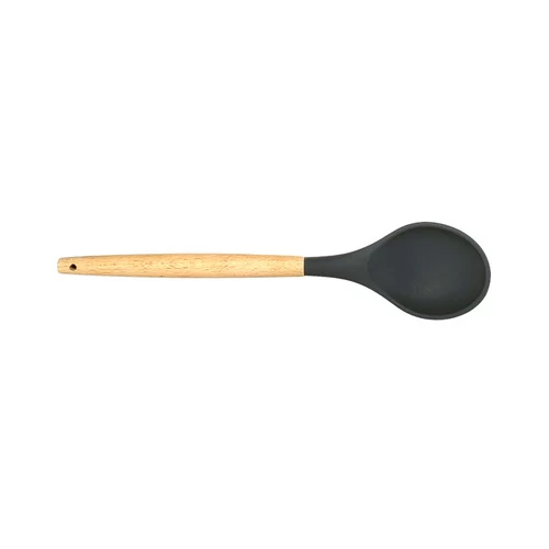 Stir, scoop, and serve with ease using the Kussi Silicone Spoon with a wooden handle. Perfect for metal and non-stick cookware, this silicone spoon head is stain and heat resistant up to 250 °C (480 °F). Comfortable and ergonomic, the wood handles provide a secure grip.