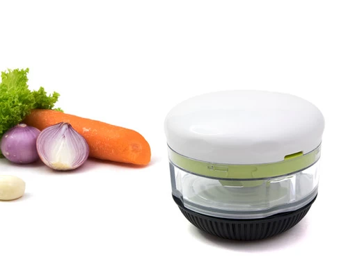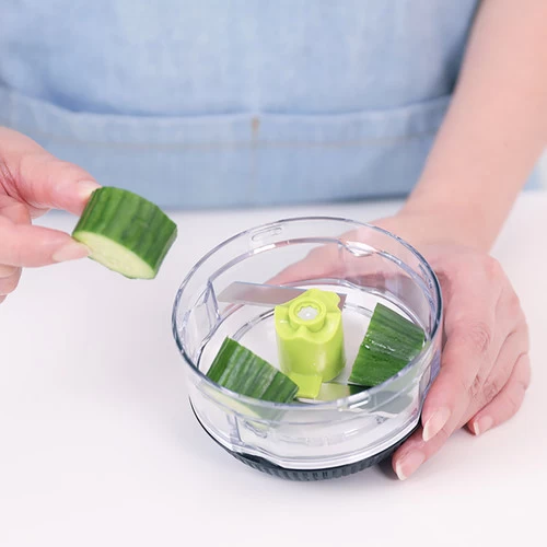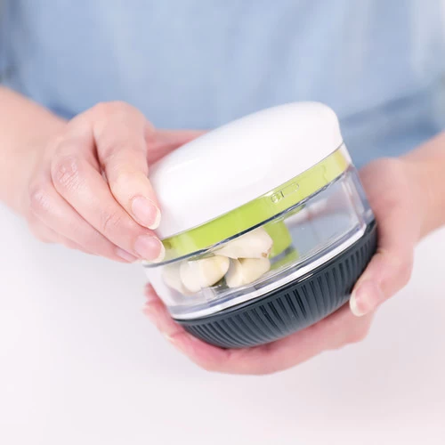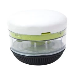 Chop, mince, and mix ingredients in a flash with this innovative handheld chopper. Use two hands to twist or roll along a surface to rotate the blades. The more you roll, the more you chop! Easy to clean and dishwasher safe.Â