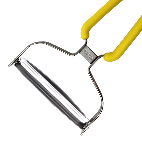 This extra large Y Peeler from Kussi is great for shredding cabbage or slicing wide strips of veggies. The razor-sharp, Japanese stainless steel blade peels effortlessly with minimal bruising. This blade is so sharp, it can even peel the tough skin of a squash (no really, we tried it!). Its ergonomic design is great for both left and right-handed use, and the soft, rubbery handle feels comfortable in hand and provides great grip. Dishwasher safe, but handwashing recommended. Store it in a drawer, or hang it up with the hole in the handle.