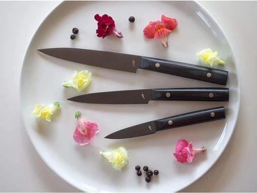 While these three utility knives of different sizes are characterized by consistent functionality, they are all made with the same care used in the design and construction of the 10 original Michel Bras kitchen knives.