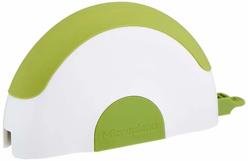 Winner of the 2015 iF Design Award, the Microplane Herb and Salad Chopper cuts your prep time in half. With two super-sharp blades, just grip the rubberized handle and rock the Chopper back and forth over herbs or leafy greens. You can also use the Choppers to quickly mince onions, garlic, chocolate, and nuts. And when you’re ready to put it away? Simply press the tab and retract the blade for safe storage.