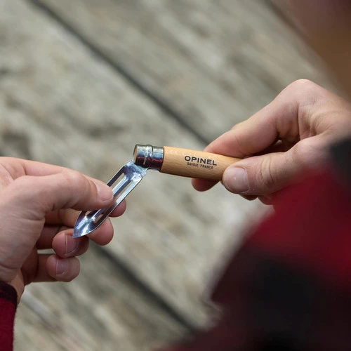 The Opinel peeler’s ingenious design allows an easy and rapid peeling of fruits and vegetables, whether you are right or left-handed! The Stainless Steel blade folds into the handle making the knife easy and safe to store and to transport on your next camping trip.
