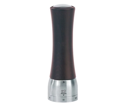 The Peugeot Madras U-Select Salt Mill 8.25″ – Chocolate (PM25236) is 8.25 inches tall, featuring a chocolate finish with stainless steel accents. The salt crushing mechanism is made of high quality specially treated stainless steel which resists corrosion from dry salts and minimizes wear. The patented u’Select grind adjustment found at the base of the mill has 6 pre-defined grind settings, or any point in between; powdery-fine to very coarse. Made in France since 1840.