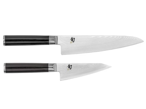 The Shun Classic 2pc Asian Knife Set – HOK Exclusive (DMS0253) will kick your kitchen prep up a notch. Featuring the Shun Classic 4″ Honesuki and the Shun Classic 7″ Asian Chef’s Knife, you can accomplish nearly every task in the kitchen. The Honesuki can be used as a traditional paring knife, but it’s designed as a poultry boning knife. This specific shape makes quick work of chicken, duck, turkey, or pheasant. Use the 7″ Asian Chef’s knife (also known as a gyuto) for any larger kitchen prep tasks, ideally for meat, fish, and vegetables. This set is available exclusively at House of Knives.