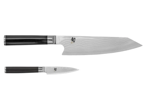 The Shun Classic 2pc Kiritsuke Knife Set – HOK Exclusive (DMS0254) is an exceptional tag team when it comes to kitchen prep. Use the Shun Classic 3.5″ Paring Knife for any small or delicate cutting tasks that require precision or blade control. For bigger tasks where you need an all-purpose blade, use the Shun Classic 8″ Kiritsuke. The kiritsuke is a Japanese multi-purpose blade, traditional used only by executive chefs in Japan. It excels at meat, fish, and vegetables, and with the belly to the Shun Classic Kiritsuke, you can easily and quickly get a rocking cut going to mince ingredients. This set is sold exclusively by House of Knives.