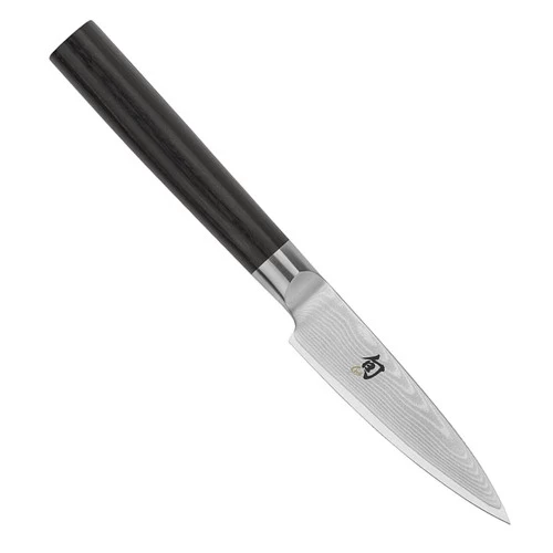 The limited edition 4” Shun Classic “Try Me” paring knife boasts both beauty and function in its tasteful and contemporary design. The razor-sharp plain edge blade is made with high-performance VG-MAX steel then clad with 34 layers of Damascus stainless steel on each side, leaving the knife with incredible edge retention and durability as well as a stunning appearance. The full tang provides perfect balance. As any paring knife, this is perfect for chopping small foods, trimming, paring, and coring, but the extra length makes it easy to tackle larger fruits and vegetables with ease.