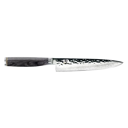A utility knife is the third member of your must-have triad of kitchen knives. With its 6.5″ blade, the Shun Premier Grey Utility Knife is between a chef’s knife and a paring knife in size. It is ideal for all those in-between-sized tasks, from trimming vegetables to slicing sausages. For any job that takes precision, the utility knife is a top choice. Sophisticated, grey Pakkawood handles and a razor-sharp edge enables you to make quick work of a wide range of cooking tasks—using a gorgeous knife that you will enjoy using every time.