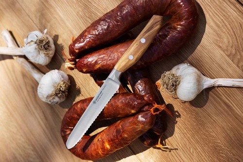 Although the serrated edge of the Wusthof Amici All-Purpose Serrated Utility Knife is inspired by the juicy, sun-ripened tomatoes that southern Italy is famous for, consider this nimble knife an effective slicer for almost anything in your kitchen — from fresh and aged cheeses to cured meats, fruits, vegetables, soft dinner rolls, and crusty baguettes. Â