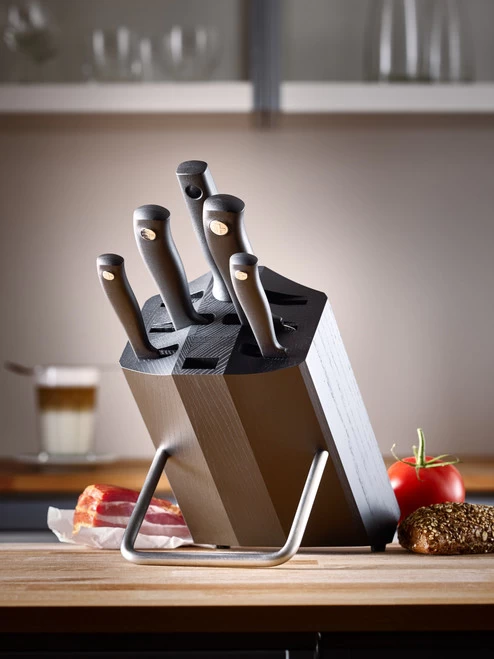 The WÜSTHOF 8 Slot Knife Block in black ash is a beautiful, easy and safe way to display your favourite kitchen knives. The tilted design of the block allows you to easily access your knives and will never damage knife blades as you might when placing them in kitchen drawers.