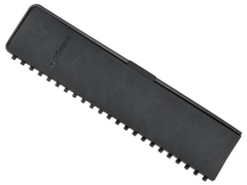The Wüsthof blade guard is a convenient and safe way to protect your knives when stored in your kitchen or when travelling. A folding mechanism allows for easy opening and closing of the protector. Inside dimensions are 255 x 55 x 7 mm and outside dimensions are 265 x 70 x 6 mm. Accommodates blades up to 26 cm (10″) in length. Perfect for your largest and longest chef knives.Â